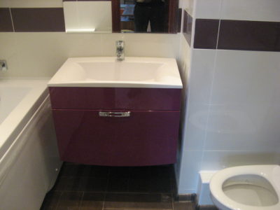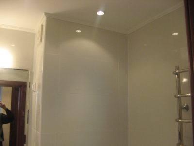 Мы выполнили ремонт совмещенного санузла на улице Коломенская по дизайн-проекту. Особенность помещения – нестандартная планировка с выступающим углом. Для комфорта жильцов мы перенесли унитаз на новое место и расположили его с правой стороны от входа, а перед ним установили стиральную машину. Центральное место комнаты перед входной дверью занимают умывальник с подвесной тумбой и большое зеркало. Вдоль глухой стены смонтирована ванна с функцией джакузи, а по бокам установлены полотенцесушитель и держатель для душа. При отделке стен использовался кафель молочного цвета. Придать интерьеру объема позволила контрастная фреза и фасады мойдодыра в темных тонах. Стоимость ремонта – 122000 рублей. Цена черновых материалов – 30 тыс. руб.