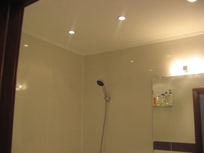 Капитальный ремонт совмещенного санузла в квартире на улице Краснобогатырская был выполнен в классическом дизайне. В ходе ремонтных мероприятий была полностью заменена дверная коробка, установлена новая дверь, заменены все инженерные коммуникации. Отделка поверхностей и сантехника выполнены в едином дизайне: в белом и бордовом цветах. В подвесной потолок встроены точечные светильники, а на стену повешено зеркало большого размера. В помещении удалось компактно разместить гидромассажную ванну, подвесной шкаф с рукомойником, унитаз и полотенцесушитель. Стоимость работ составила 123 тысяч рублей. На черновые материалы было потрачено 30700 руб.